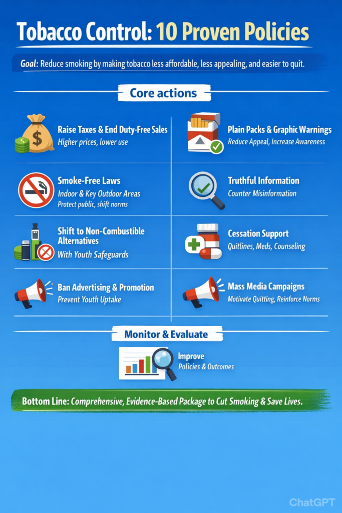 This is widely considered the single most effective policy for reducing tobacco consumption. Significant and regular increases in excise taxes make tobacco products less affordable, discouraging young people from starting and incentivizing current users to quit. For every 10% price increase, studies show a significant reduction in overall consumption, with the greatest impact seen among youth and low-income populations.