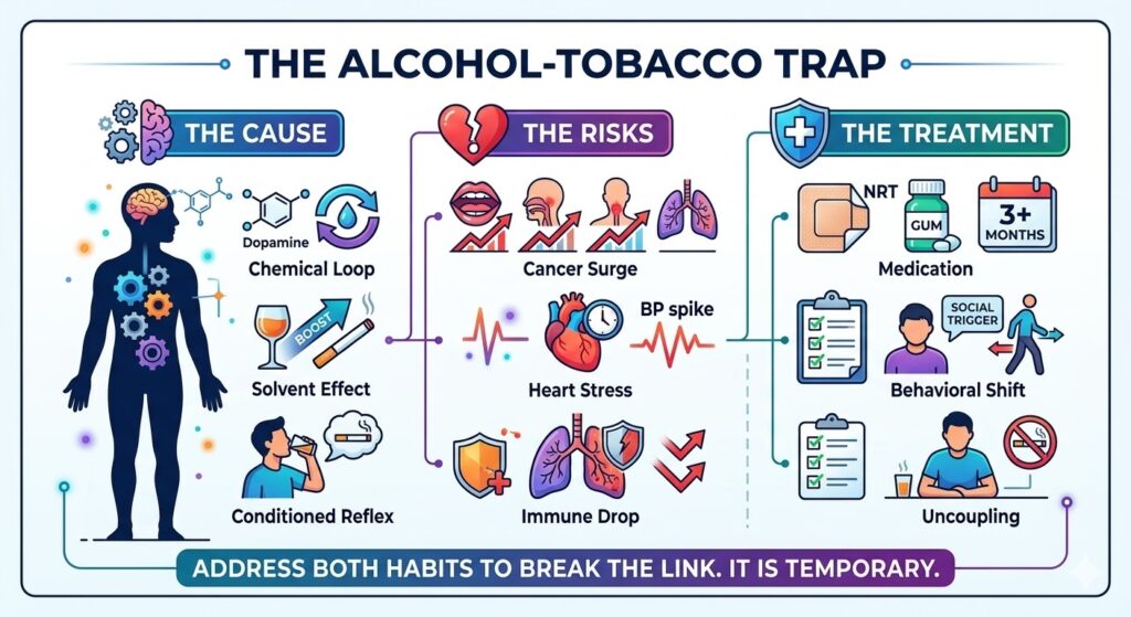 For many smokers, the link is visceral. The smell of beer or the taste of wine triggers an almost instinctive reflex to reach for a cigarette. This powerful link between tobacco and alcohol is not only a difficult habit to break, it is a synergistic threat that greatly amplifies the health risks, far beyond the sum of its parts. Understanding why these two substances are so often consumed together and the amplified dangers they create is crucial for anyone trying to break free from the grip of tobacco.