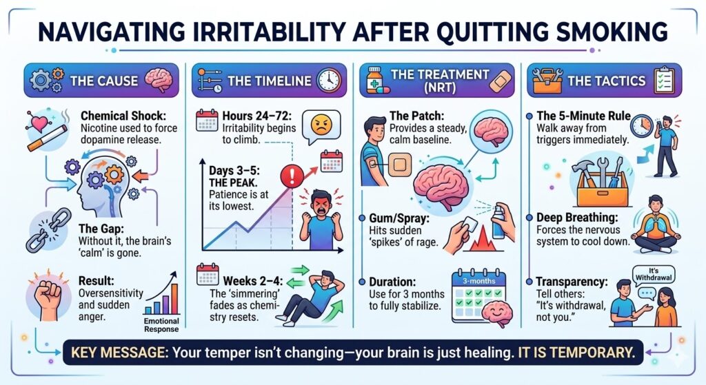 The first few days after quitting smoking can feel less like a victory and more like a descent into unusual anger. This sudden and brutal increase in irritability, where a misplaced set of keys or a slow-moving queue is perceived as a personal offense, is one of the most common obstacles on the path to a smoke-free life. Understanding that this “short temper” is a biological side effect of the healing process, rather than a permanent personality change, is the first step toward easing the tension.