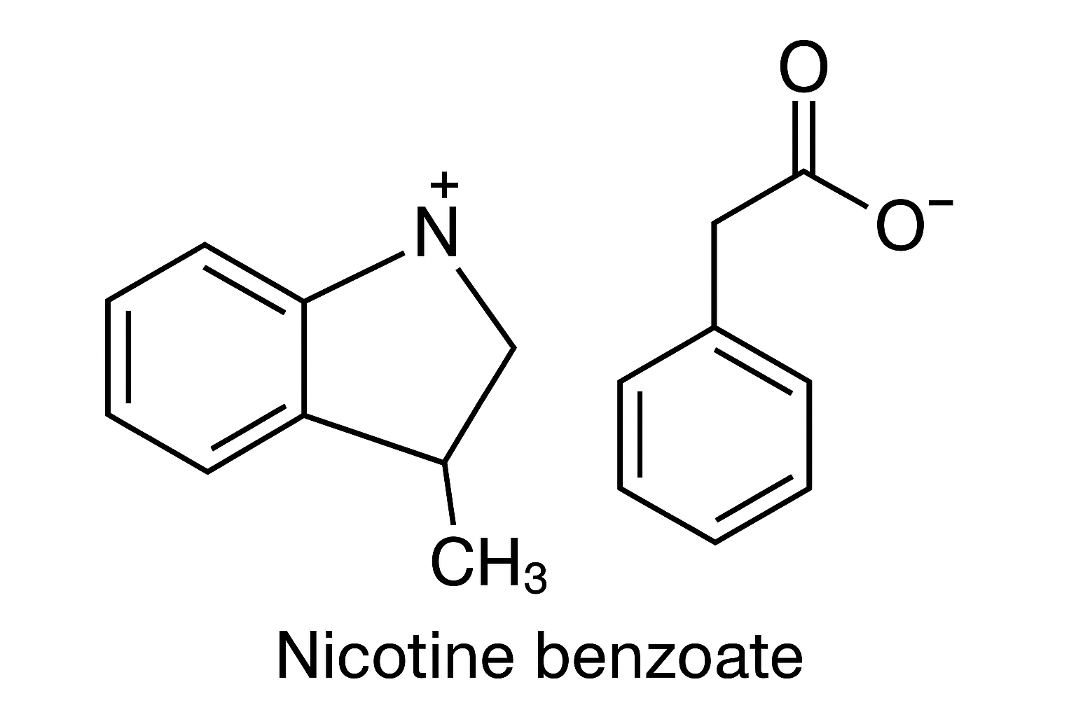 For use in e-liquids, manufacturers modify the chemical structure of the standard nicotine (called freebase nicotine) by adding an organic acid—commonly benzoic acid. This chemical reaction creates the nicotine salt.